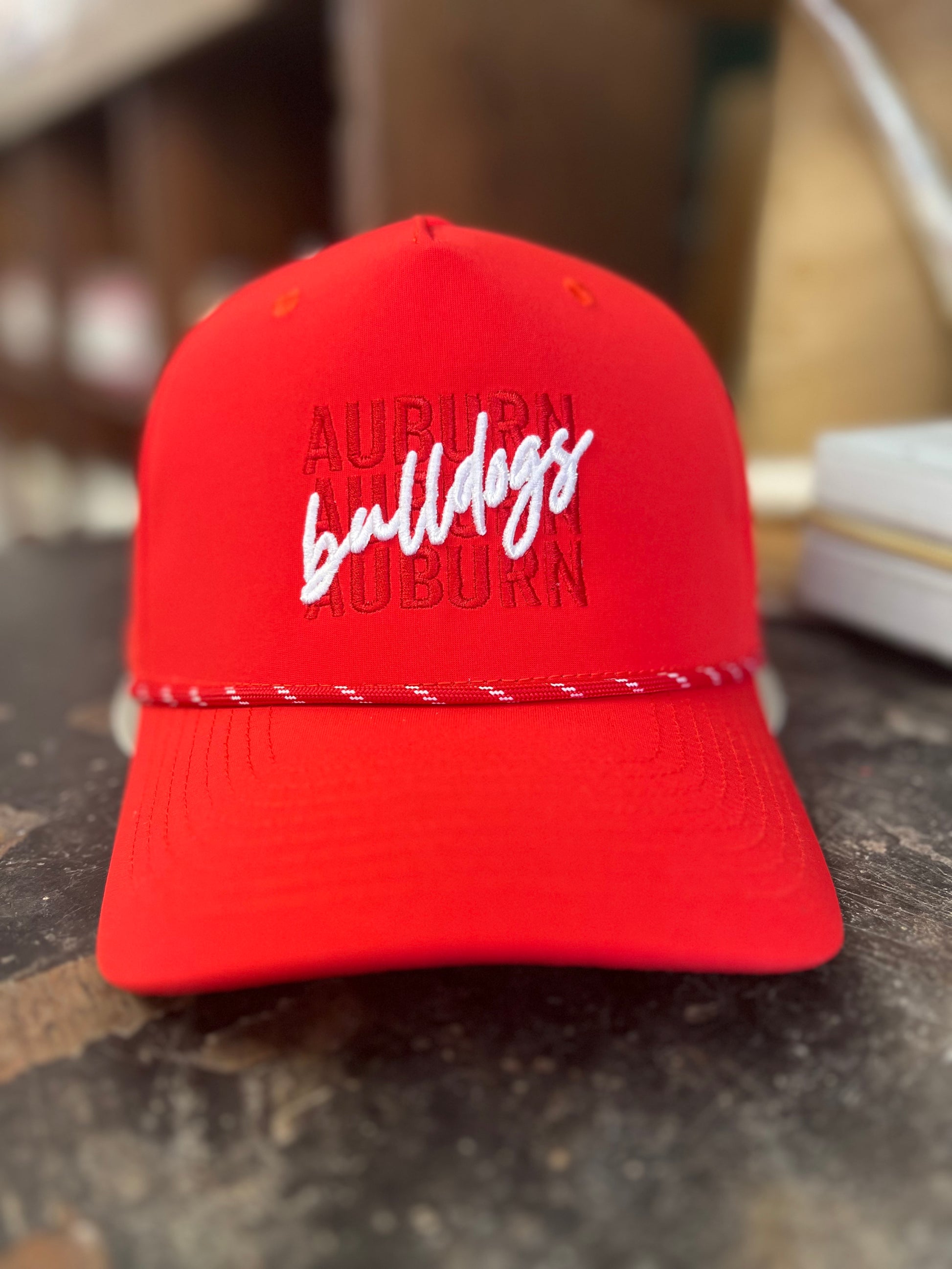 Show your team spirit with the Auburn Triple Bulldogs Rope Hat, expertly crafted for durability and style. Featuring a classic rope detail and triple bulldog embroidery, this hat offers a refined look while providing comfortable wear. Perfect for fans seeking a high-quality accessory that combines tradition with everyday functionality.