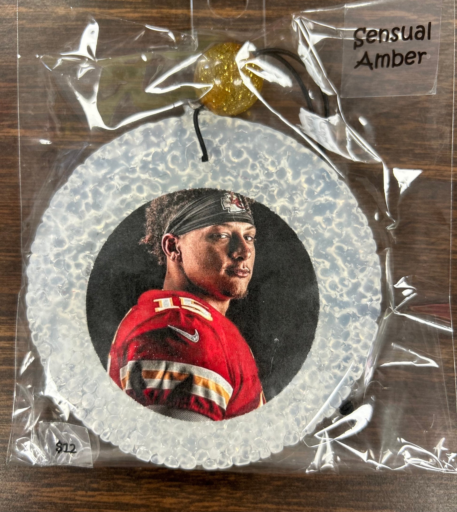 The Mahomes Freshie - Sensual Amber offers a sophisticated blend of warm amber tones with subtle, inviting nuances. This expertly designed fragrance creates an alluring atmosphere, enhancing any space with its rich, sensual aroma. Ideal for those seeking a balanced scent that combines depth and elegance for long-lasting freshness.