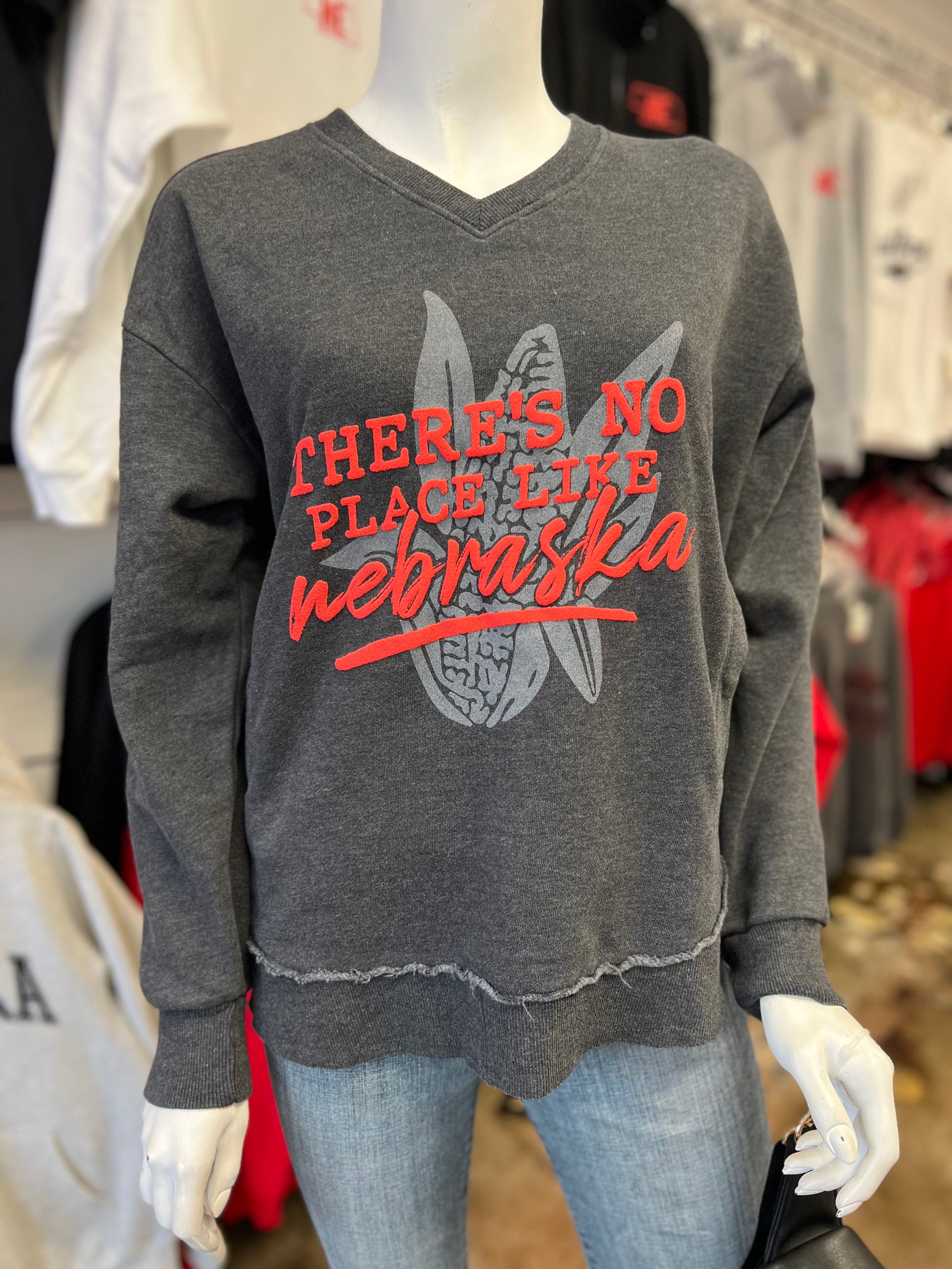 This No Place Like NE - Melange V-Neck Crew is a must-have for any wardrobe. Made with a comfortable and stylish melange fabric, this v-neck crew offers a versatile and trendy look. Perfect for any occasion, it's the perfect addition to your fashion essentials.