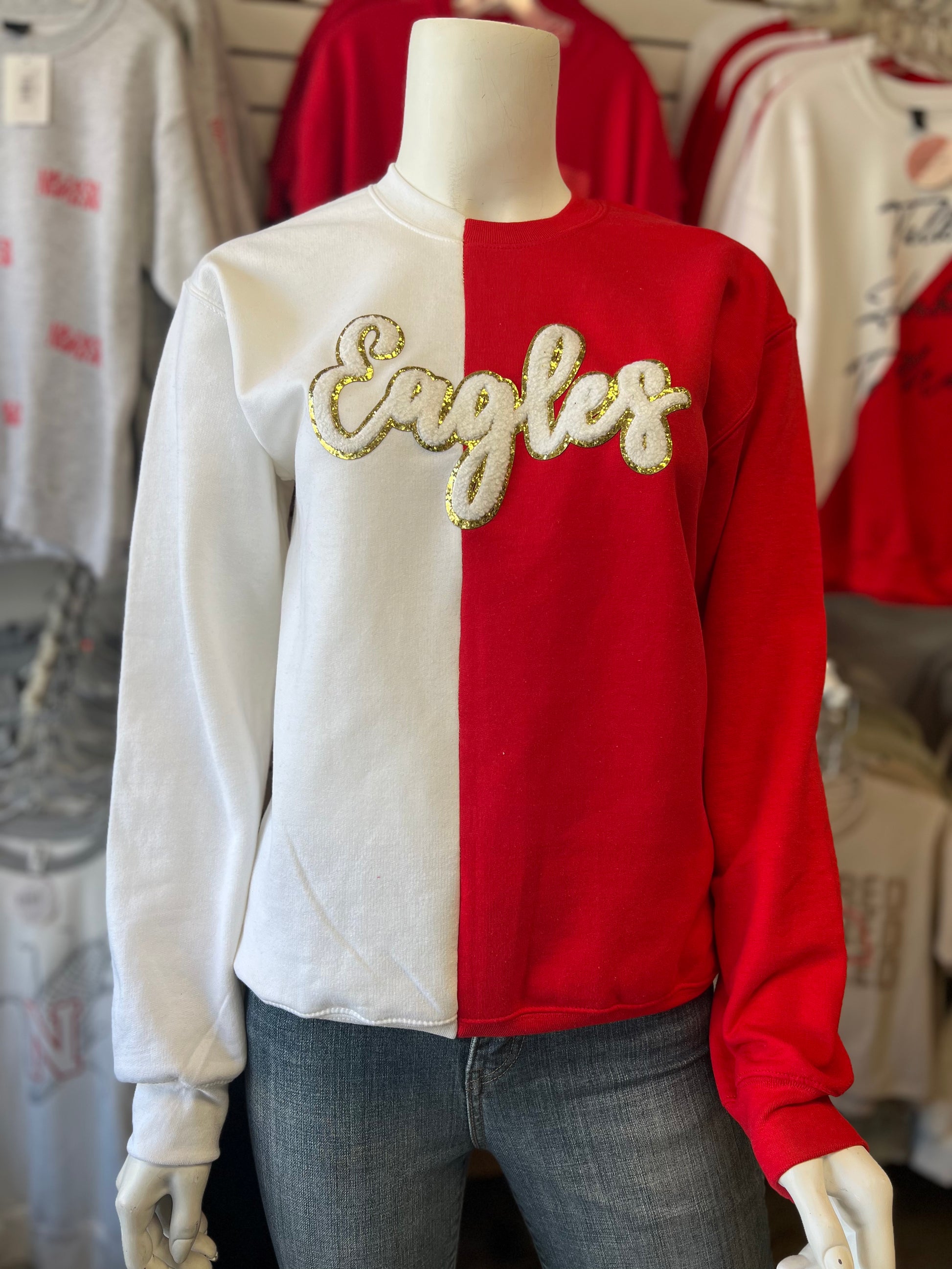 The Split Color Eagles Crewneck combines classic comfort with distinctive style through its unique two-tone design. Crafted from soft, durable fabric, this crewneck ensures all-day warmth and breathability. Ideal for casual wear, it features a bold Eagles graphic that adds a touch of character and edge to your wardrobe. Perfect for layering or wearing alone, this versatile piece balances fashion and function for an effortlessly sharp look.